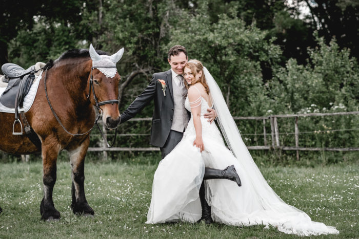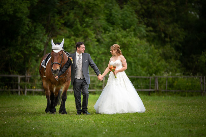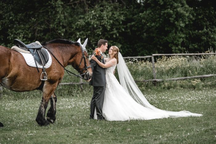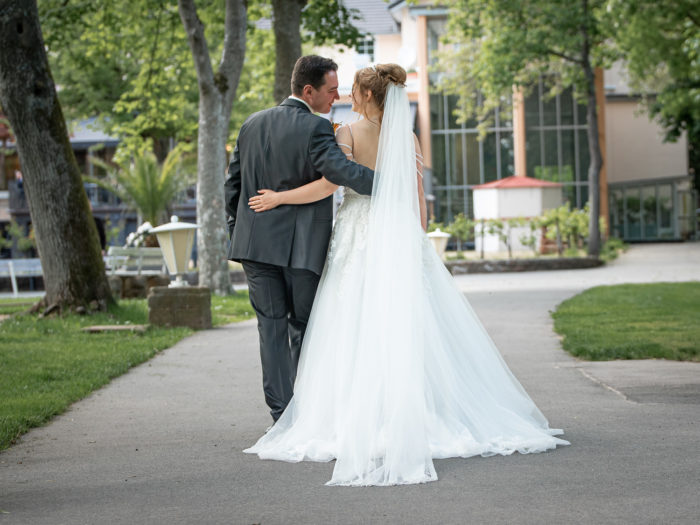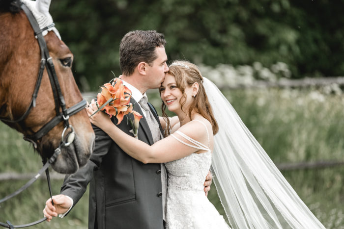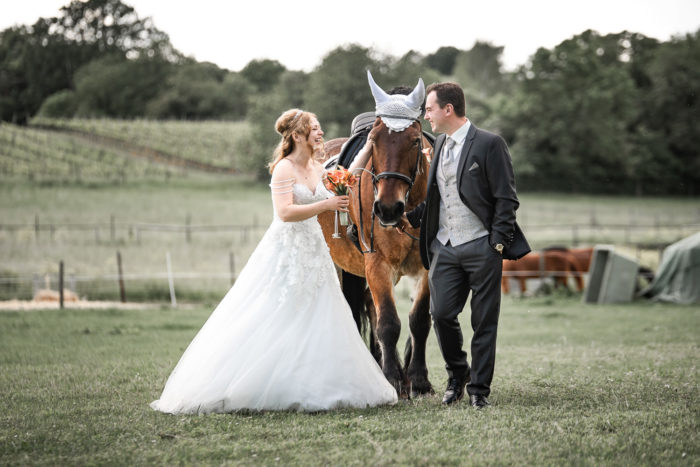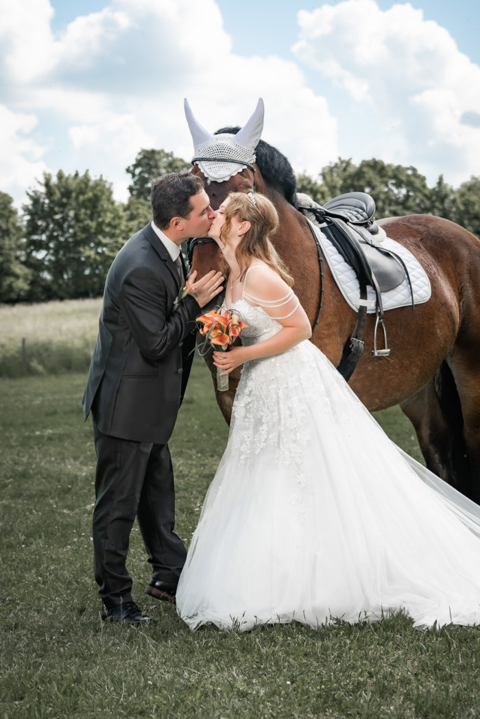 Die kirchliche Trauung von Denise und Alexander fand in der Paulus-Kirche in Bad Kreuznach statt. Zur anschließenden Feier ging es zur Hochzeitslocation ins Kurhaus Bad Münster. Neben den Gruppenfotos, bei denen auch wieder unsere Drohne zum Einsatz kam, fand im Kurpark Bad Münster auch ein kleineres Paar-Shooting statt. Am Abend stand unser mobiles Fotostudio für die Gäste bereit. Für das After Wedding Shooting ein paar Tage später, trafen wir uns auf einer Pferdekoppel in Bretzenheim. Neben dem Brautpaar wurde auch das Pferd von Denise mit in Szene gesetzt. Zum Abschluss des Shootings ließ es sich das Paar nicht nehmen, für außergewöhnliche Bilder in voller Montur in einen Bach zu steigen.
